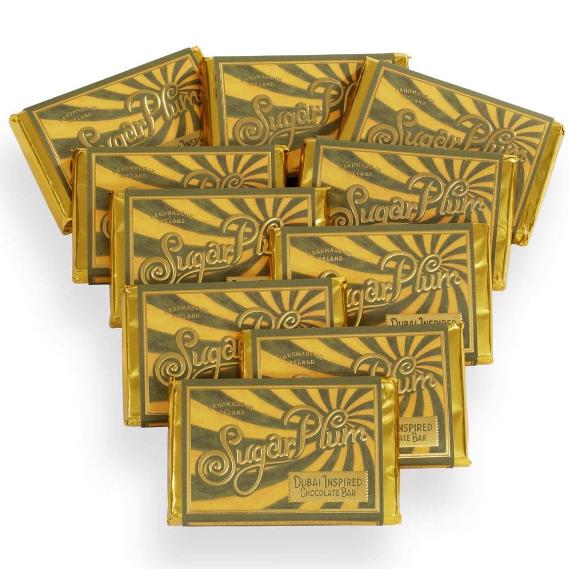 This bundle includes 10 Bars at a massive discounted bundle rate! The original pistachio Dubai Chocolate Bar now made by your favourite award winning Irish Chocolatier. Are you looking for that special chocolate gift that is sure to impress? Look no further than our absolutely scrumptious handmade Dubai Chocolate Bar made in Ireland. This magical creation is handmade in our chocolate factory using the most luxurious of ingredients and is a proper treat. It has the most scrumptious filling of handmade crunchy toasted kataifi pastry smothered in pistachio & tahini, and then enrobed in our smooth and creamy milk chocolate – it surely is to die for! Perfect for chocolate lovers, luxury gift seekers, and anyone looking to indulge in a sweet escape. Discover why the Dubai Chocolate Bar has gone viral and become a must-have for foodies and chocolate enthusiasts around the globe.