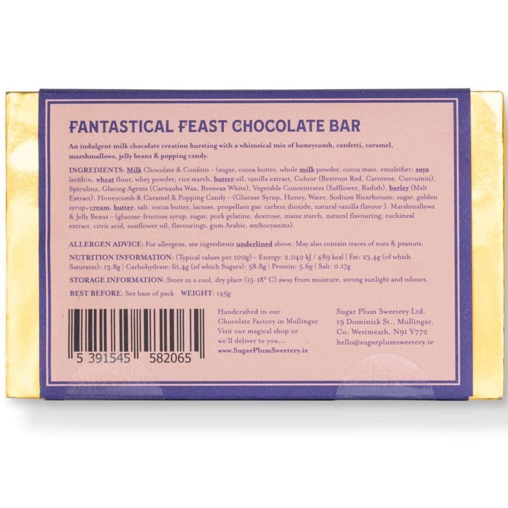 Our Fantastical Feast Bar is a magical mix of textures, – soft & fluffy marshmallows mixed with chewy caramel & crunchy honeycomb, finished with crackling pops of popping candy, its impossible to put down.